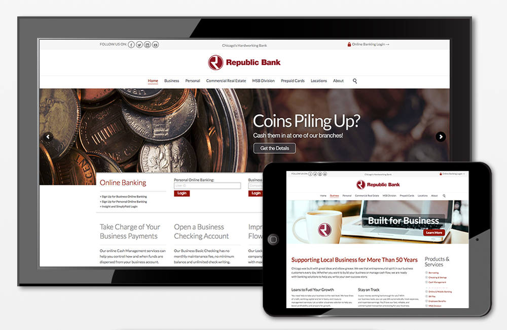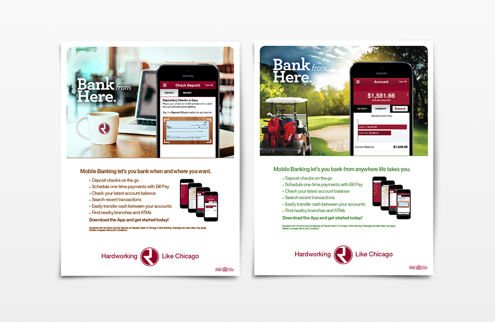 In our most recent brand evolution for Republic Bank, we embraced a theme that drew comparisons between the strong work ethic of the bank’s hometown, Chicago, and that of their personnel. Messages are supportive, suggestive and succinct – appropriate for, and respectful of, their on-the-go target markets.